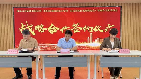 日前,山东商业职业技术学院与山东未来集团有限公司(以下简称“未来集团”)、山东省教育发展促进会产教融合专业委员会(以下简称“省教促会”)在山东未来云谷共同举办战略合作签约仪式。学校党委书记邓迎迎,党委副书记、院长张宗国,未来集团副总经理徐小传,省教促会产教融合专委会秘书长刘晨曦等出席签约仪式。