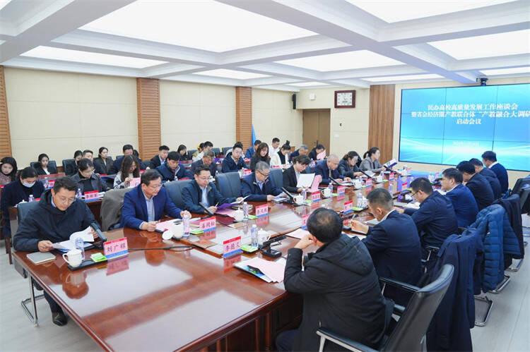 齐鲁网·闪电新闻11月19日讯 11月18日下午,民办高校高质量发展工作座谈会暨省会经济圈产教联合体“产教融合大调研”启动会在山东英才学院顺利召开。济南市教育局党组成员、副局长王志国出席并讲话;济南市教育局职业与高等教育处处长杨林,高校联络服务处处长吕正平,山东省社会组织总会党委书记、会长,省会经济圈产教联合体常务执行秘书长王安忠等领导出席会议。